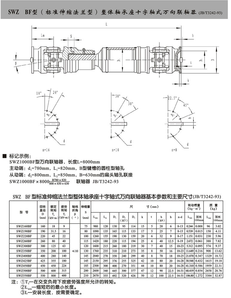 您所在的位置  技术支持 》 联轴器篇 》 国产系列 》 SWZ  BF型(标准伸缩法兰型)整体轴承座十字轴式万向联轴器